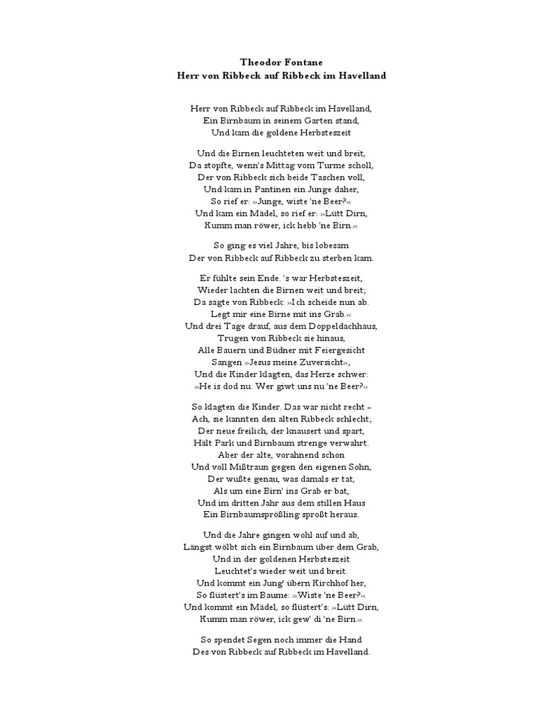 Herr Von Ribbeck Auf Ribbeck Im Havelland Rap Herr Von Ribbeck