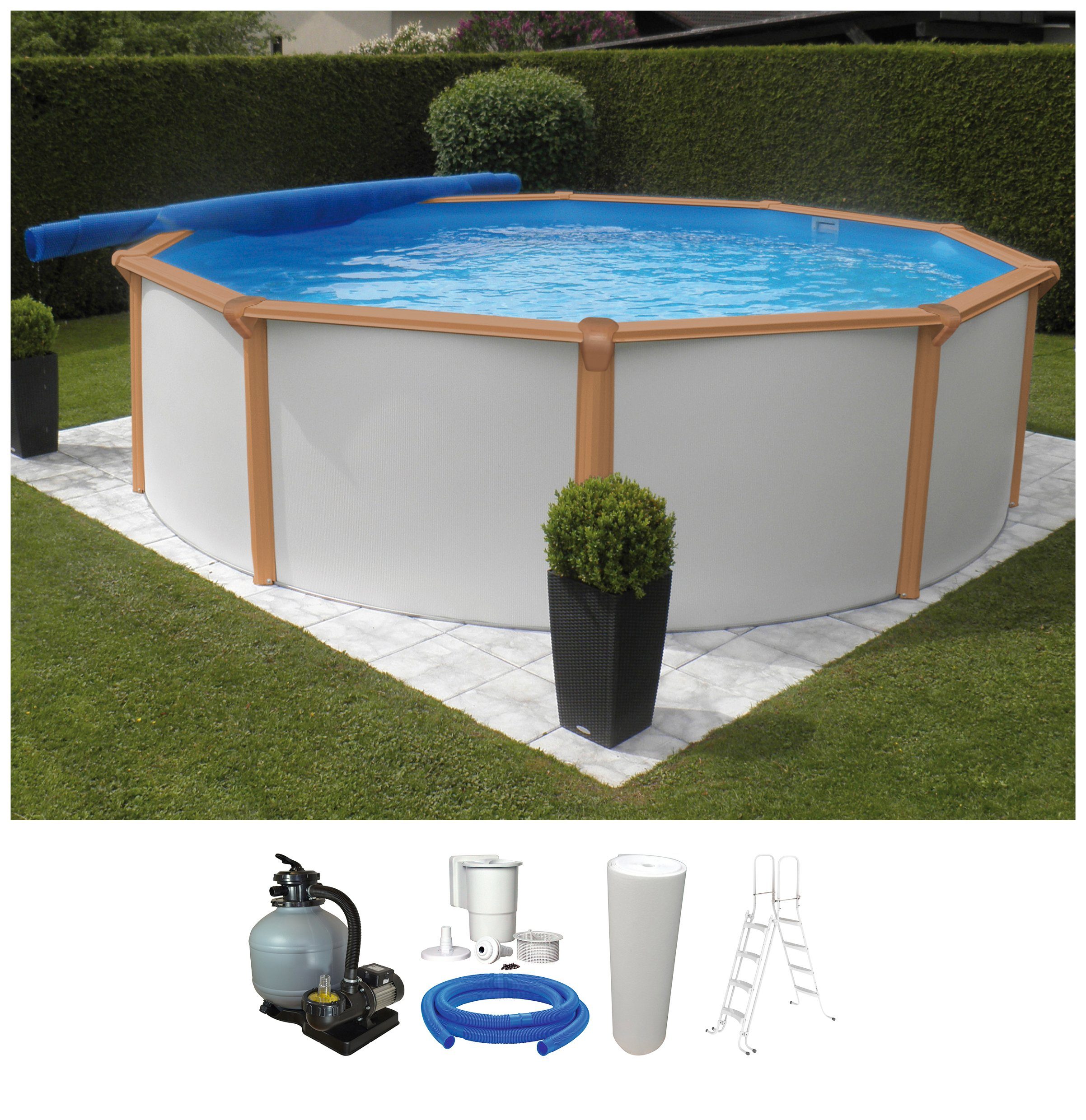 Swimming pool im garten. Swimming pools angebote auf hagebaude. Weiterhin werden bodenschienen und ein hochwertiger blauer 45 cm breiter spezialhandlauf mit keilbiese mitgeliefert.