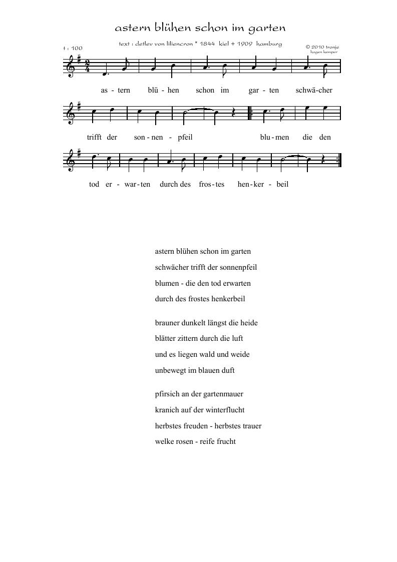 Lieder Saitenspiel Tronjes Blog Detlev V Liliencron Astern
